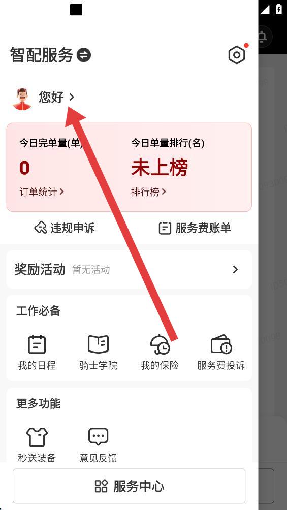 2、在側邊欄界面,點擊頭像區(qū)域,進入個人中心頁面。