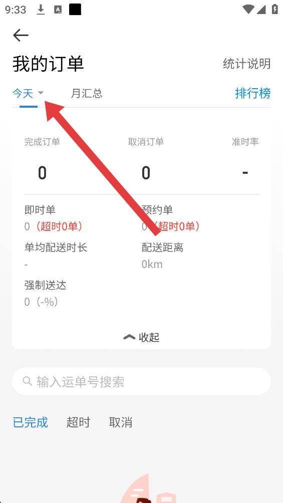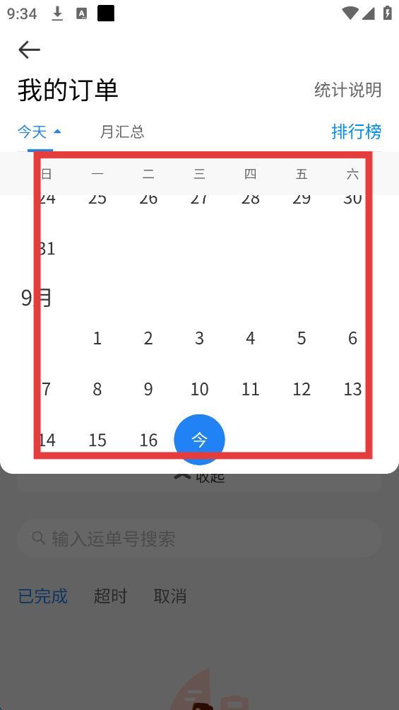 4、進入我的訂單頁面后,點擊今天選項的下拉箭頭,會打開日歷表。