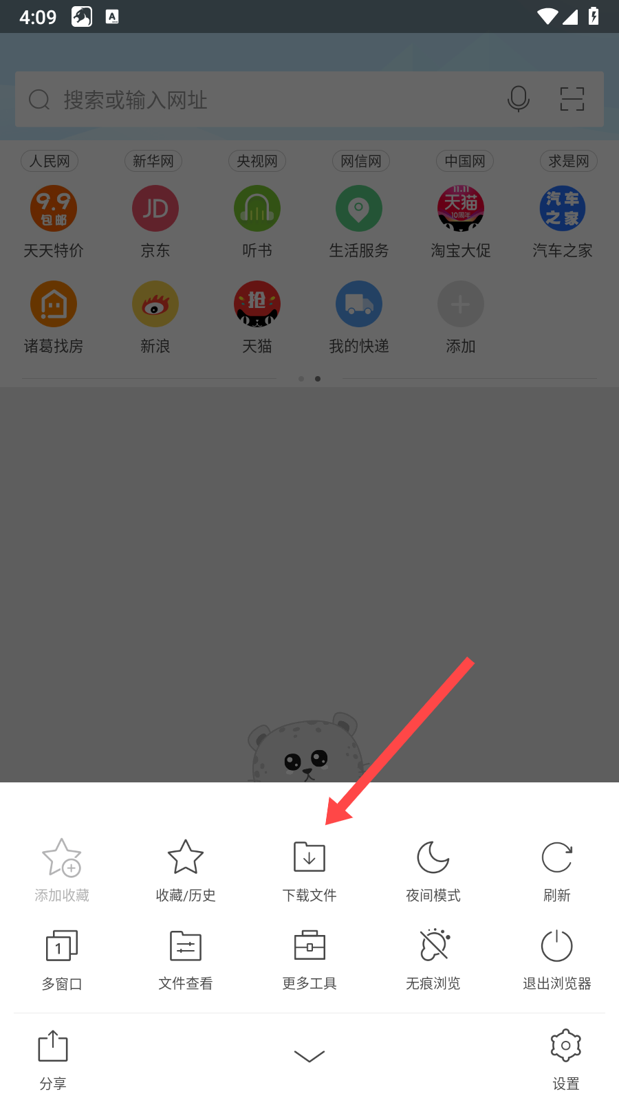1、打開獵豹瀏覽器,點(diǎn)擊底部導(dǎo)航欄中的菜單圖標(biāo)。