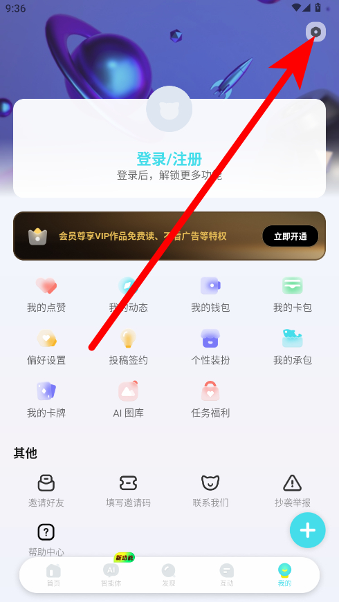 2、在個(gè)人頁面中,點(diǎn)擊右上角設(shè)置圖標(biāo),進(jìn)入設(shè)置界面。