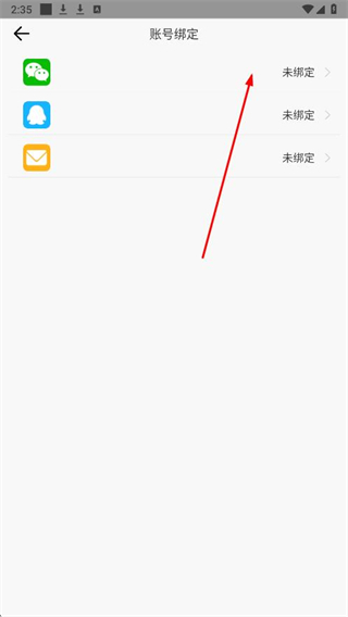 4、在賬號(hào)綁定頁(yè)面,點(diǎn)擊微信對(duì)應(yīng)的未綁定。