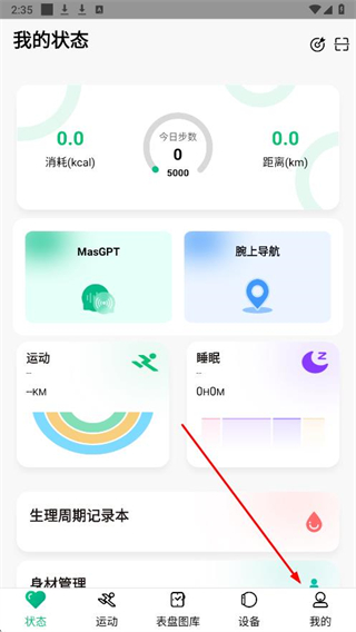 1、打開(kāi)MasWear智能手表APP,點(diǎn)擊導(dǎo)航欄中的我的。