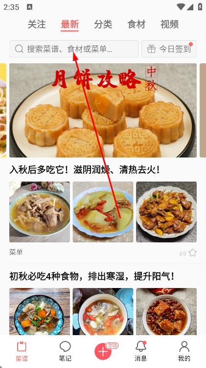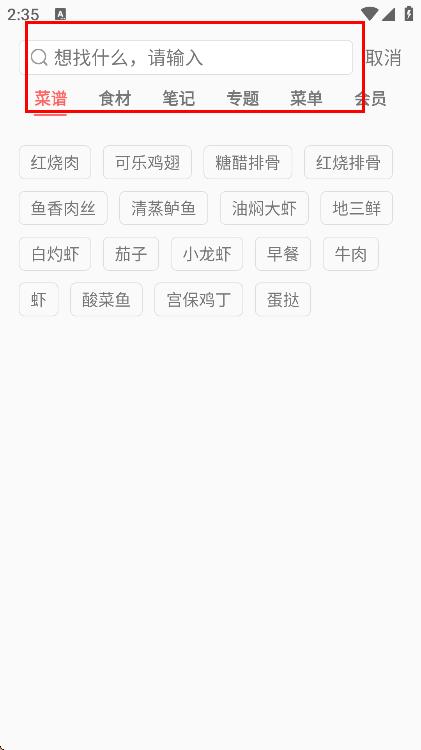 2、在搜索框中,輸入想要查找的菜譜名稱。