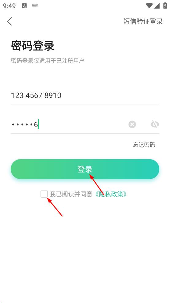 4、勾選我已閱讀并同意隱私政策,點(diǎn)擊“登錄”按鈕,完成新東方APP的密碼登錄流程。