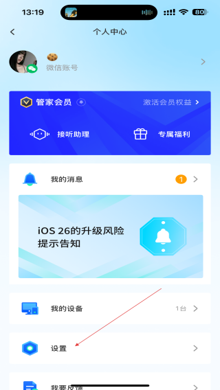 2、進(jìn)入個(gè)人中心的界面內(nèi),點(diǎn)擊設(shè)置的功能按鈕。