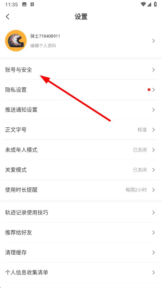 2、在設置頁面中找到并點擊賬號與安全的選項。