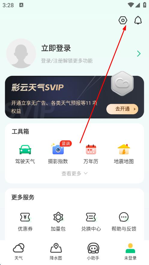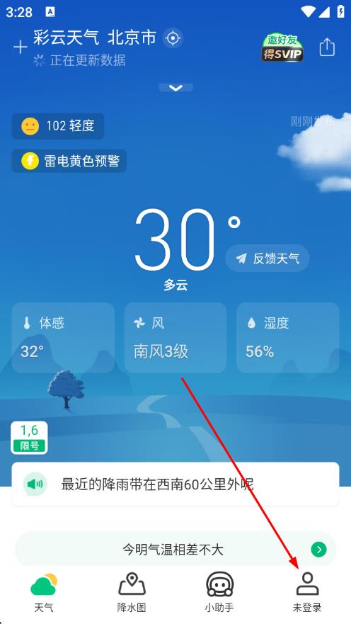 1、打開(kāi)彩云天氣APP,點(diǎn)擊底部導(dǎo)航欄未登錄進(jìn)入個(gè)人頁(yè)面。