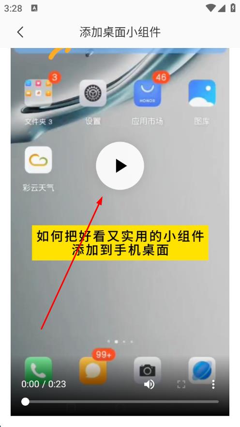 4、進(jìn)入添加桌面小組件頁(yè)面后,按照頁(yè)面提示操作,即可將彩云天氣小組件添加到手機(jī)桌面。