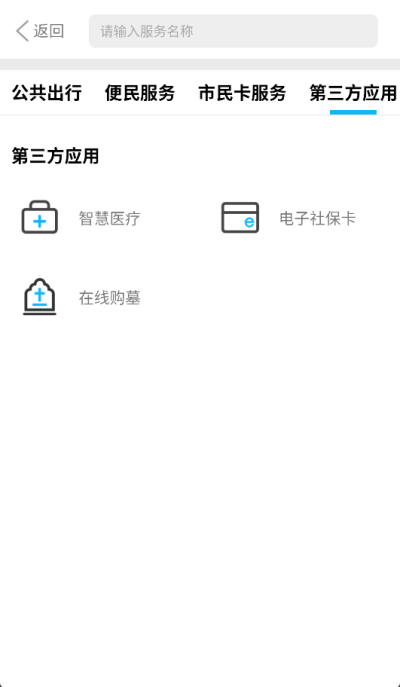 提供第三方應(yīng)用服務(wù),在里面可以選擇智慧醫(yī)療、電子社保卡和在線購(gòu)墓等服務(wù),方便居民的日常生活