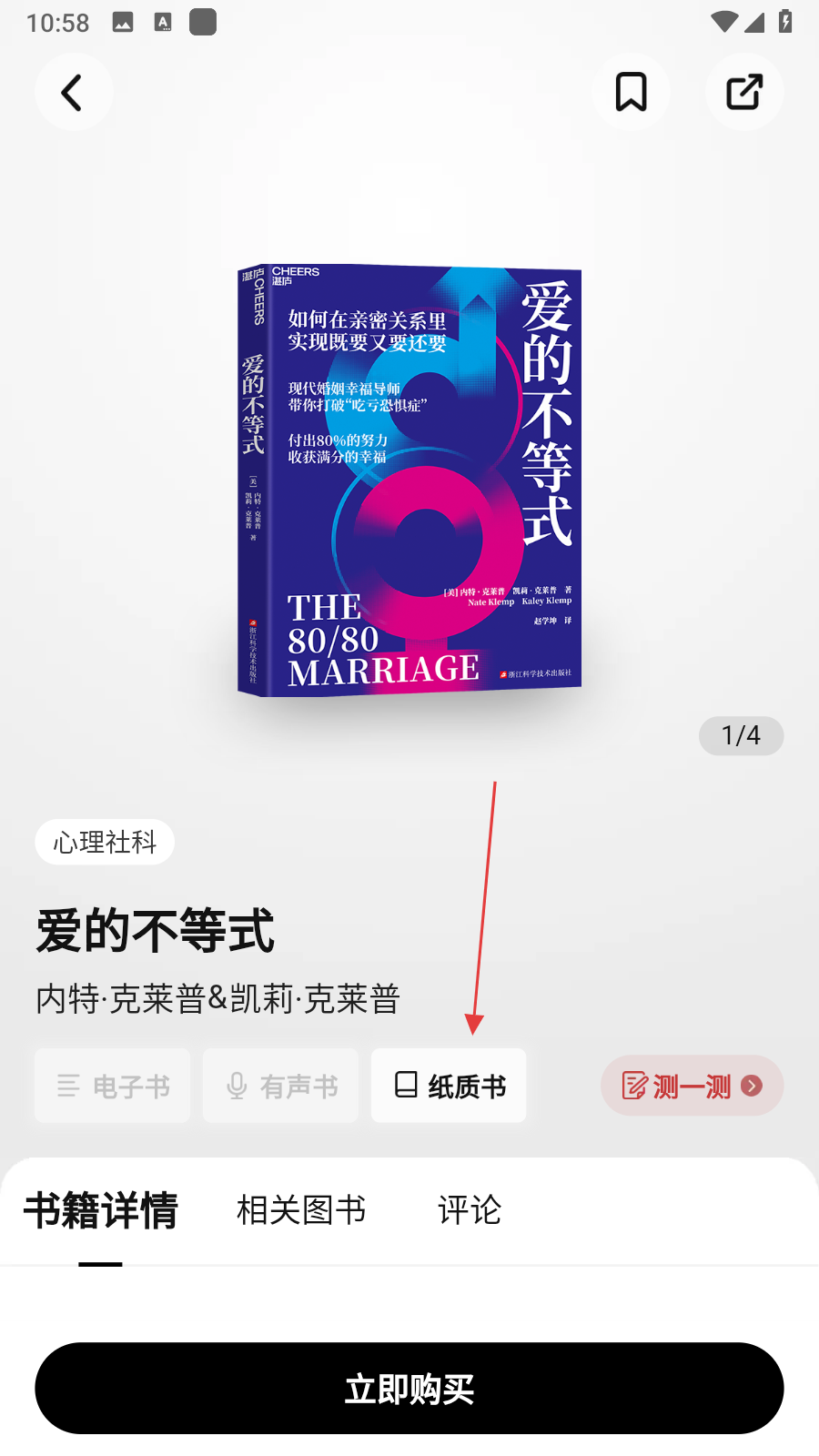 2、在書籍詳情頁,點(diǎn)擊紙質(zhì)書選項(xiàng),確認(rèn)要購買的版本。