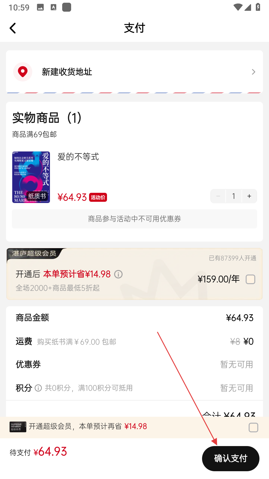 4、在支付頁面,點(diǎn)擊新建收貨地址,填寫收貨信息,點(diǎn)擊確認(rèn)支付。