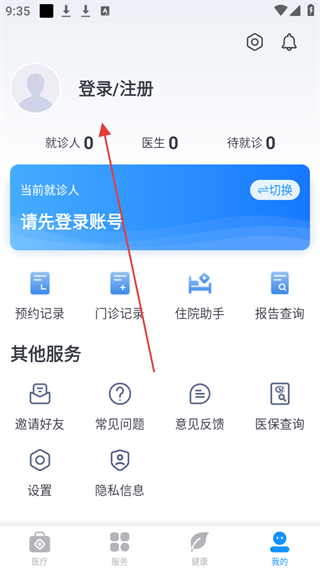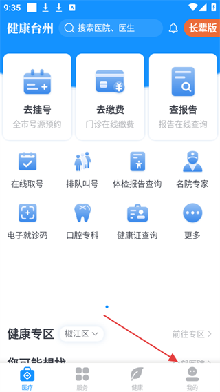 1、打開健康臺州APP,點(diǎn)擊底部導(dǎo)航欄中的我的選項(xiàng)。