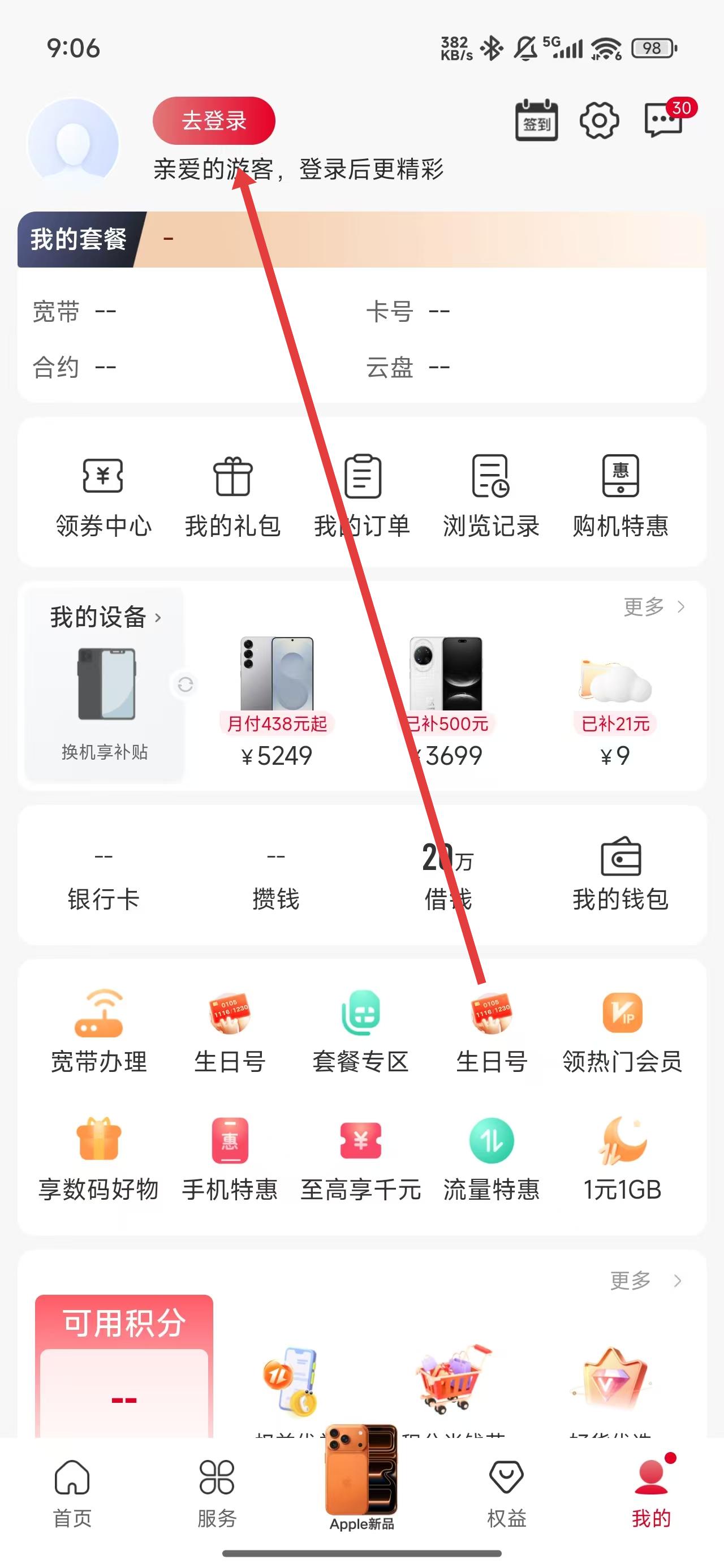2、在進入到我的主頁后,可以點擊上方去登錄按鈕,開始登錄操作。
