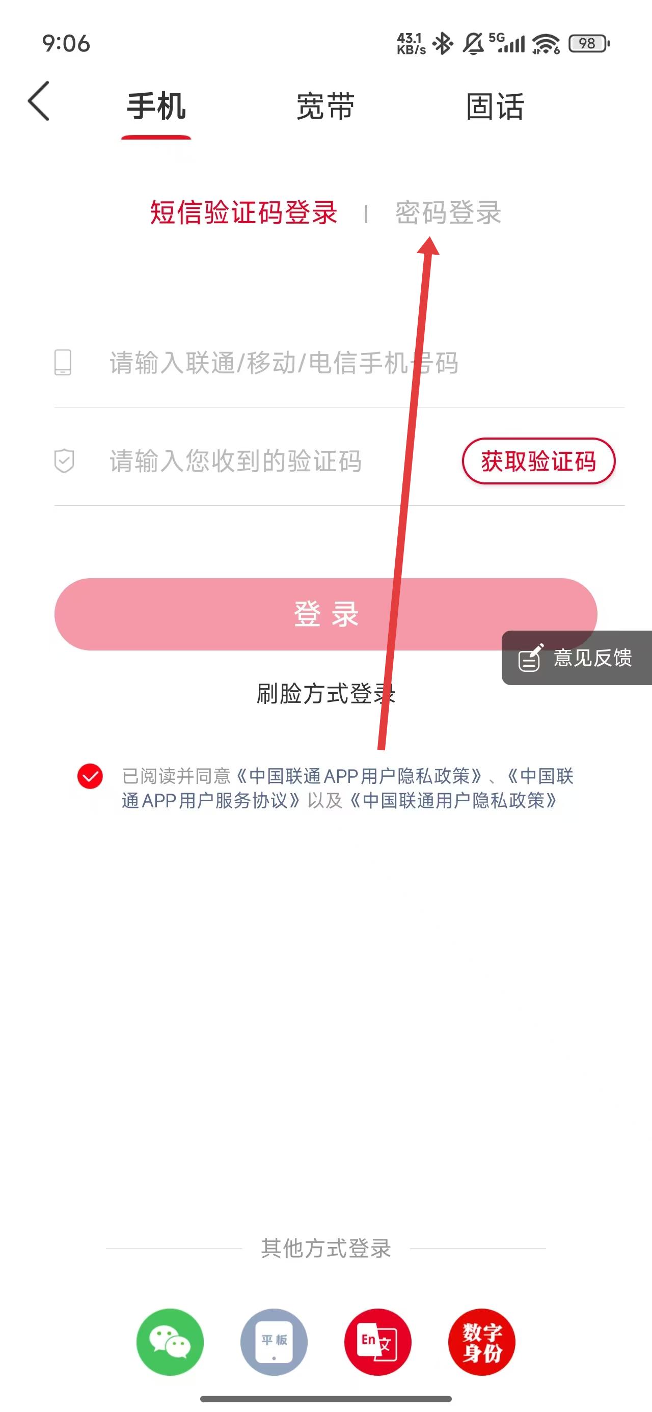 3、在進入到登錄頁面后,可以點擊密碼登錄按鈕,切換登錄方式。