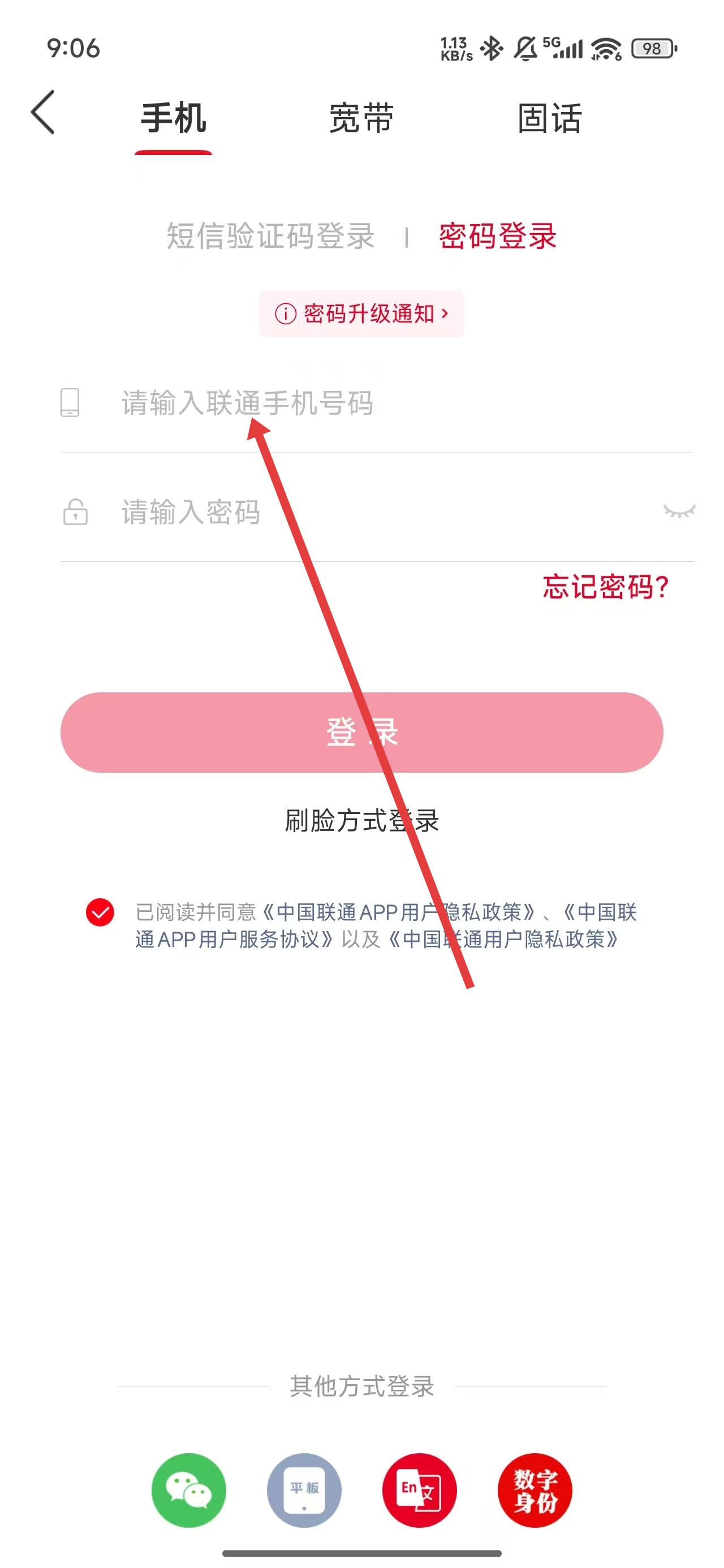 4、在切換為密碼登錄方式后,點擊輸入框依次輸入框手機號和密碼,即可完成登錄。