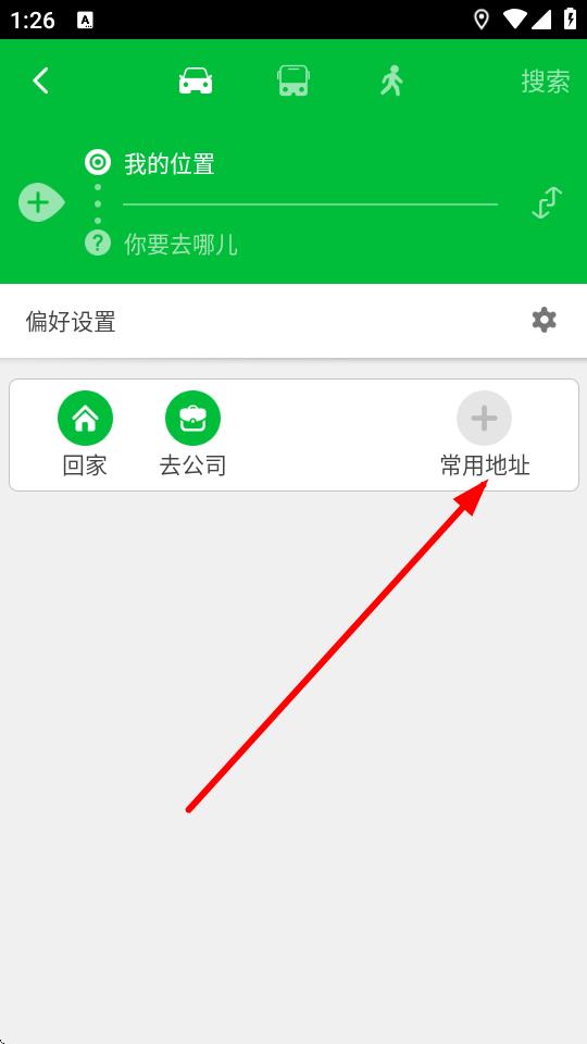 2、進入路線規(guī)劃界面后,找到常用地址區(qū)域,點擊其右側(cè)的+號。