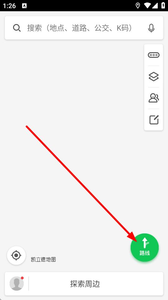 1、打開凱立德導航應用進入主界面,點擊界面右下角的路線按鈕。