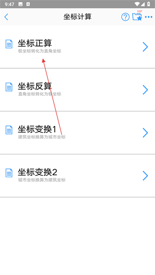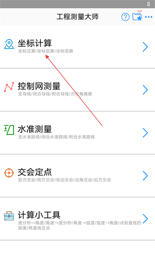 1、打開工程測量大師應用,點擊坐標計算選項,進入坐標計算功能界面。
