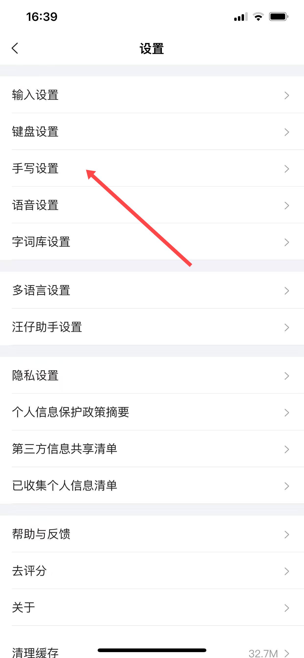 2、在設(shè)置菜單列表里,查找手寫(xiě)設(shè)置選項(xiàng),點(diǎn)擊進(jìn)入手寫(xiě)相關(guān)設(shè)置界面。