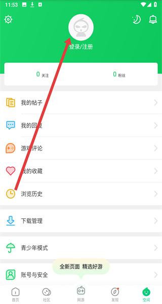 2、在進入到我的空間后,可點擊頭像區(qū)域,跳轉頁面進行登錄操作。