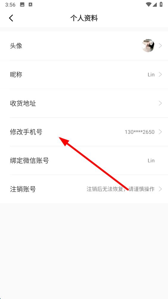 3、在個(gè)人資料頁(yè)面里,找到修改手機(jī)號(hào)選項(xiàng)并點(diǎn)擊,進(jìn)入修改手機(jī)號(hào)界面。