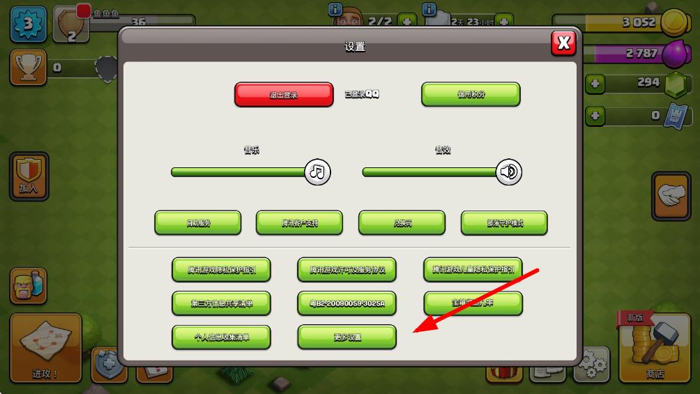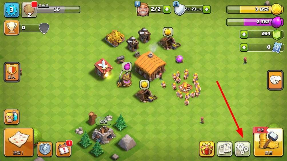 1、進入部落沖突游戲主界面,點擊屏幕右下角的齒輪圖標,打開設置頁面。