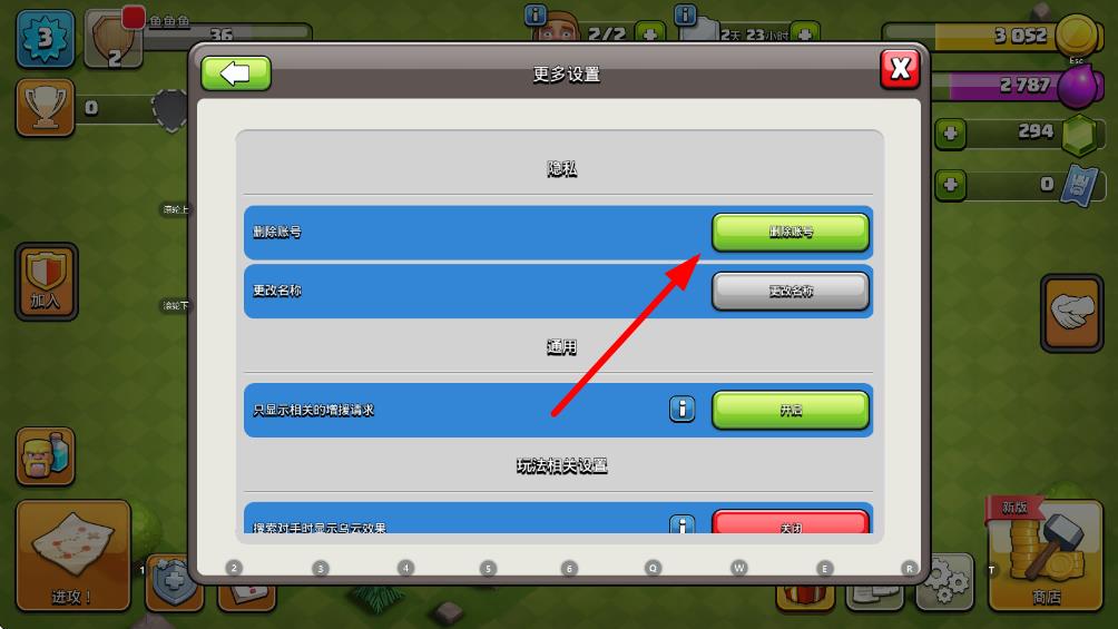 3、在更多設置界面的隱私板塊下,點擊刪除賬號按鈕,按照后續(xù)提示完成操作,即可注銷部落沖突賬號。請謹慎操作,注銷賬號后數(shù)據(jù)無法恢復。