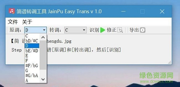 在下拉選項中設(shè)置“原調(diào)”與“轉(zhuǎn)調(diào)”。設(shè)置好后,此時還不能導(dǎo)出轉(zhuǎn)調(diào)后的結(jié)果 ,需要對原簡譜進行識別。