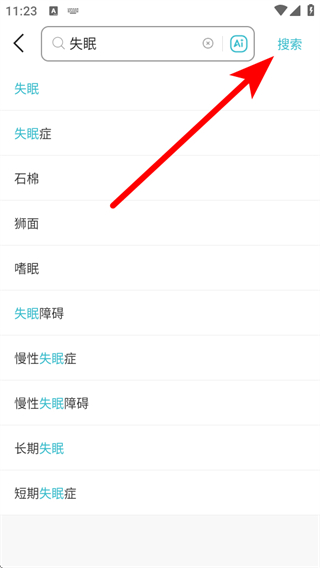 2、在搜索輸入頁面,輸入關(guān)鍵詞后點擊搜索,進入搜索結(jié)果頁面。