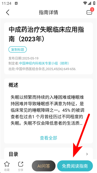 4、在指南詳情的頁面,點擊免費閱讀指南,即可查看指南內(nèi)容。