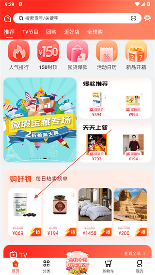 1、打開(kāi)東方購(gòu)物APP,在首頁(yè)挑選要購(gòu)買(mǎi)的商品,點(diǎn)擊商品進(jìn)入詳情頁(yè)。