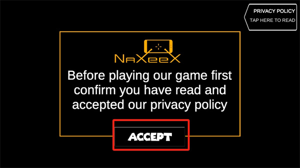 1、打開游戲,在游戲進入之前會有一個協(xié)議,點擊【accept】同意協(xié)議,然后就可以進入到游戲環(huán)節(jié);