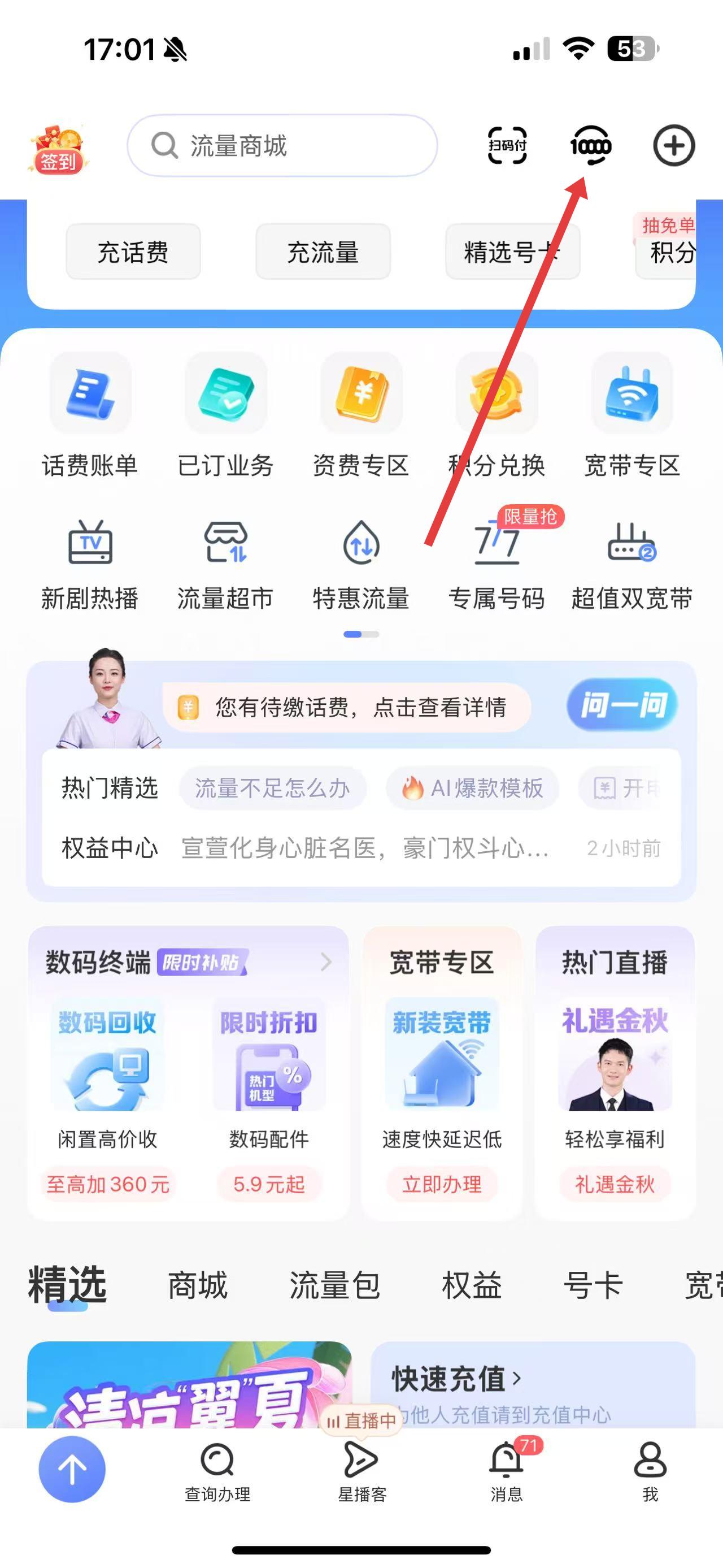 4、業(yè)務(wù)辦理:充值繳費(fèi),套餐辦理,積分兌換,手機(jī)、靚號(hào)、流量購(gòu)買, 方便在手!