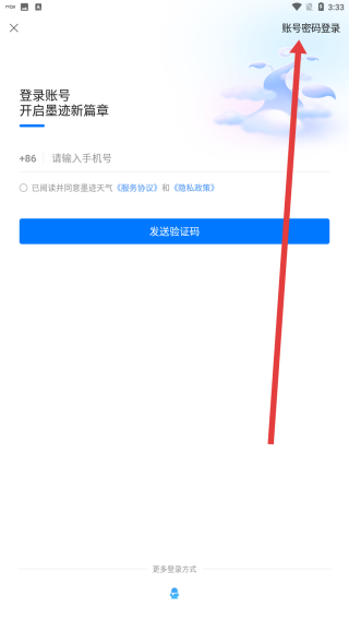 2、在賬號登錄頁面中,可以點擊右上角賬號密碼登錄按鈕切換登錄方式。