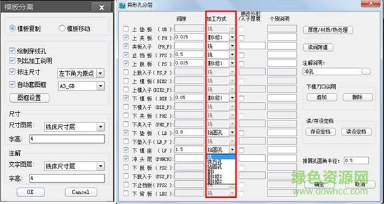 模具總裝圖繪制完成后,可自動(dòng)拆分出模板圖,繪制穿孔、列出加工說明、標(biāo)注模板尺寸、以及自動(dòng)套圖框。