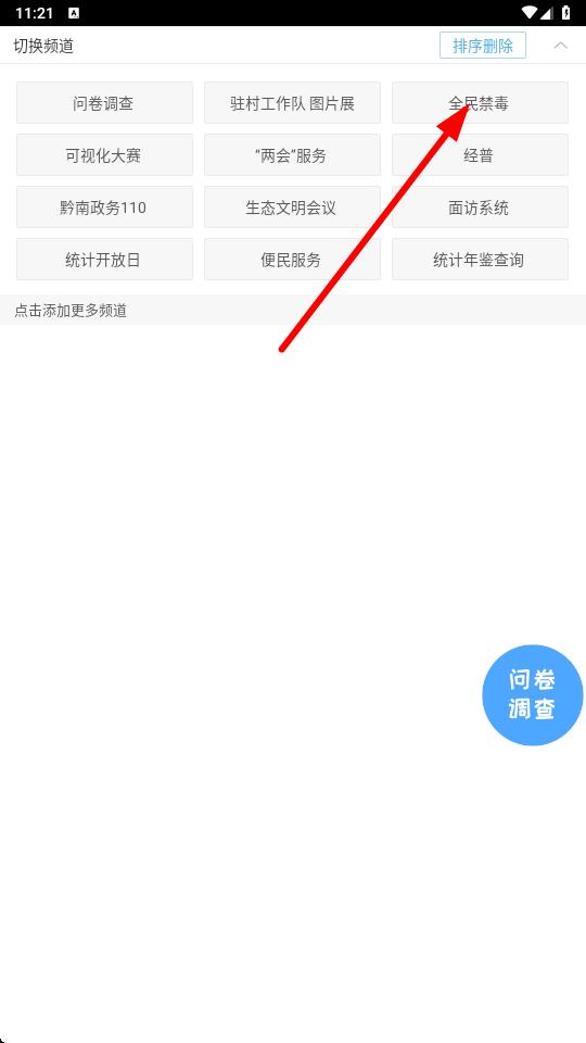 2、進(jìn)入統(tǒng)計(jì)專區(qū)頁(yè)面后,在陳列的功能選項(xiàng)里,仔細(xì)查找?guī)в腥窠緲?biāo)識(shí)的選項(xiàng),找到后點(diǎn)擊該選項(xiàng),進(jìn)入全民禁毒專屬內(nèi)容界面。