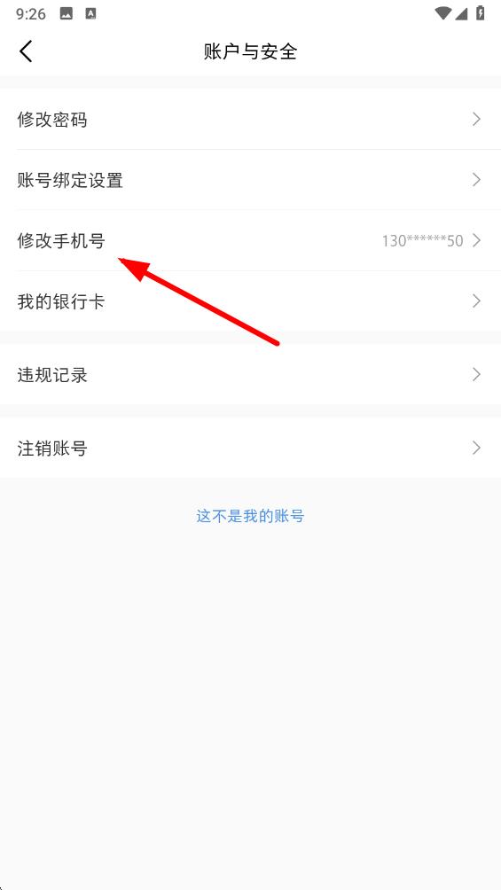 3、在賬戶與安全頁(yè)面里,點(diǎn)擊修改手機(jī)號(hào)選項(xiàng),按照后續(xù)提示完成手機(jī)號(hào)修改操作。