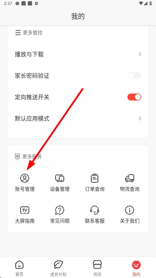 2、在我的頁(yè)面,向下滑動(dòng),找到賬號(hào)管理選項(xiàng)并點(diǎn)擊。