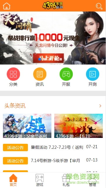 4396手游游戲盒app是一款提供海量上線、內(nèi)測(cè)、變態(tài)游戲等的手游平臺(tái),為你提供各種游戲資訊、手游禮包、游戲攻略等,讓大家更輕松自在的體驗(yàn)游戲的樂趣,綠色資源網(wǎng)誠意推薦!