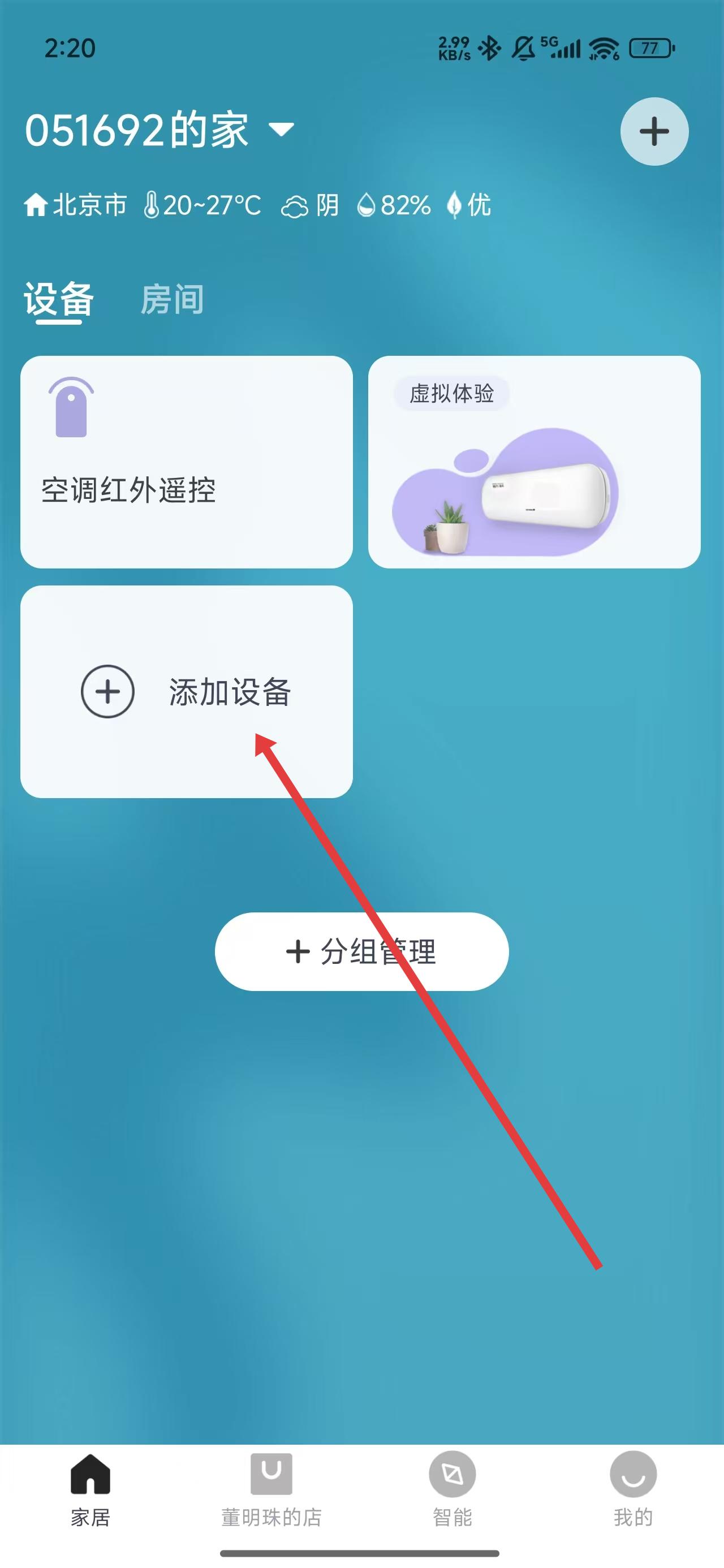1、在格力app主頁面中,點擊添加設備按鈕,進行設備添加操作。