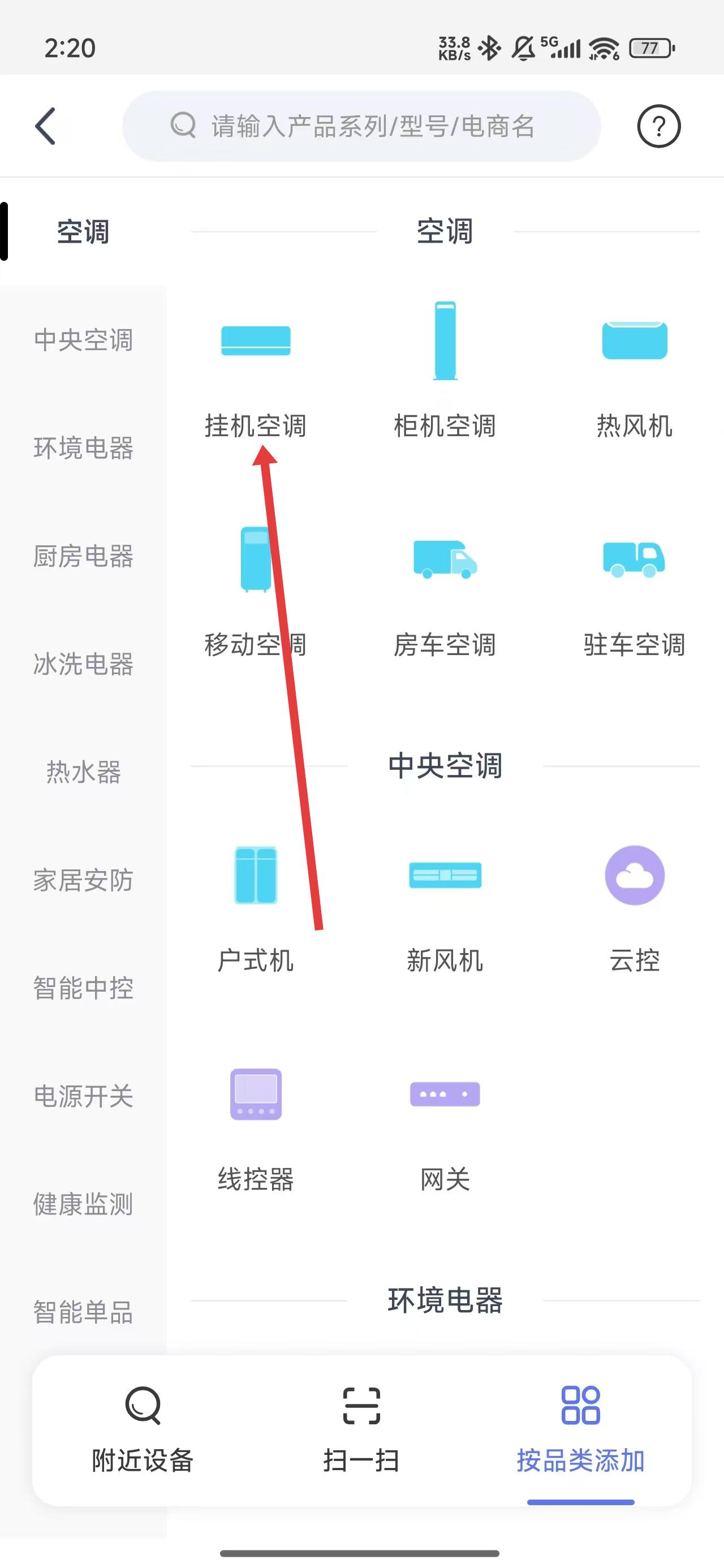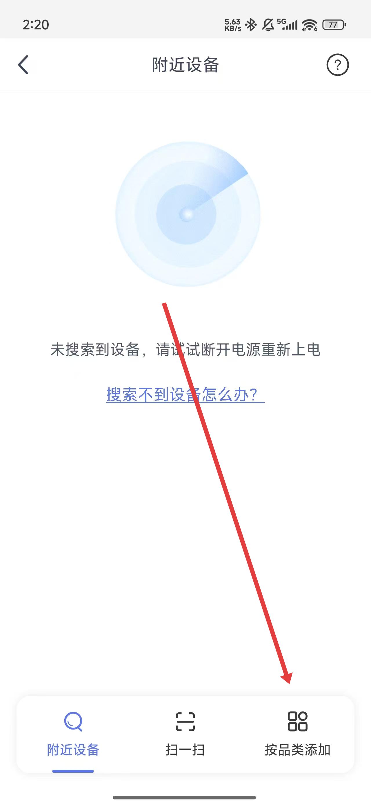 2、若沒有搜索到附近設備的話,可以點擊底部按品類添加按鈕。