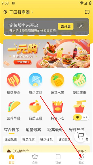 1、打開急先蜂外賣,點(diǎn)擊底部導(dǎo)航欄我的選項(xiàng)。