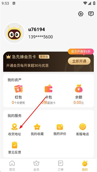 2、在我的頁面中,找到并點(diǎn)擊收貨地址選項(xiàng)。