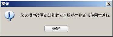 輸入資金賬號(hào)以及交易密碼,點(diǎn)擊登陸會(huì)彈出“您必須申請(qǐng)更高級(jí)別的安全服務(wù)才能正常使用本系統(tǒng)”,點(diǎn)擊“確定”按鈕。繼續(xù)選擇“申請(qǐng)更高級(jí)別的安全服務(wù)”。