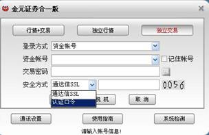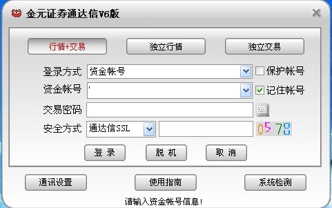 打開“金元證券通達(dá)信合一版”。 首次使用本軟件安全方式選擇“通達(dá)信SSL”。