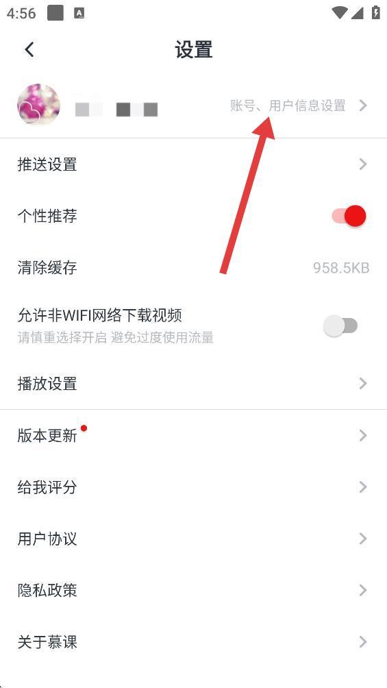 2、點(diǎn)擊頭像右側(cè)賬號(hào)、用戶(hù)信息設(shè)置。