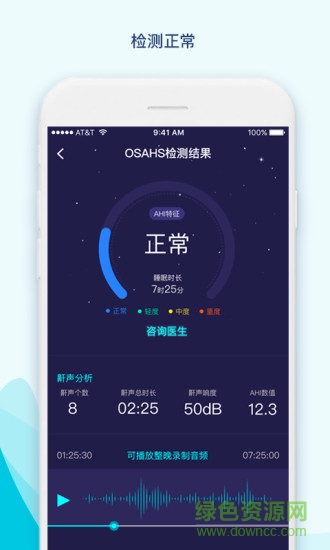 鼾聲護(hù)理app-針對阻塞性睡眠呼吸暫停低通氣綜合征(OSAHS)-全球首款,無需硬件配合。在記錄睡眠打鼾過程中,檢測結(jié)果包括鼾聲個數(shù)、鼾聲總時長、鼾聲響度、AHI數(shù)值等重要生理指標(biāo)、讓使用者更懂自己。為用戶保留最為詳盡的歷史數(shù)據(jù),讓用戶能夠隨時隨地的查閱歷史數(shù)據(jù)。