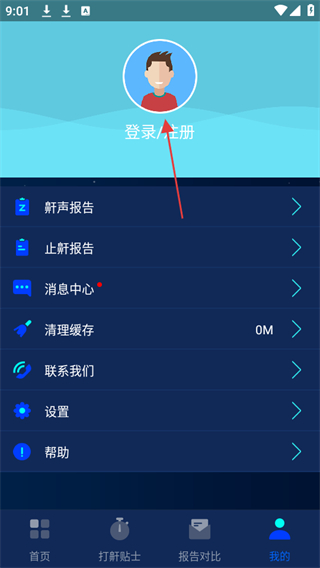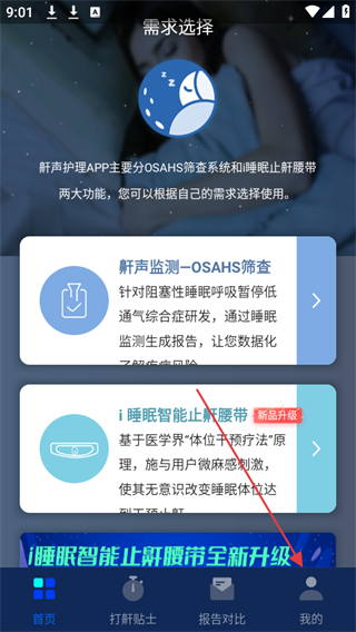 1、打開鼾聲護(hù)理app,點擊底部導(dǎo)航欄中的我的選項。