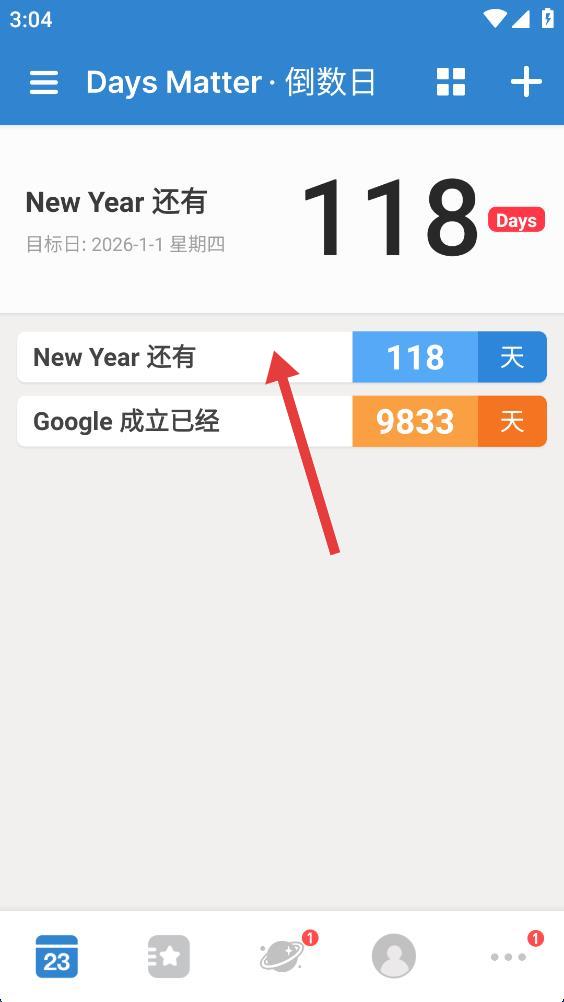 1、打開倒數(shù)日App,在主界面點擊要刪除的事件。