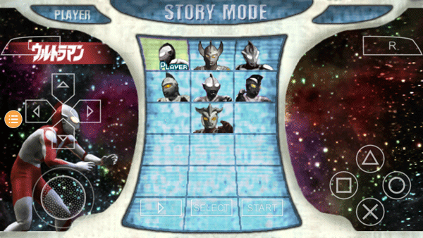 1、首先通過本站下載奧特曼格斗進(jìn)化0高清漢化版之后,在主界面選擇左邊的【上下左右】箭頭來進(jìn)行模式選擇,選擇好之后點(diǎn)擊右側(cè)的【圓圈】確認(rèn);